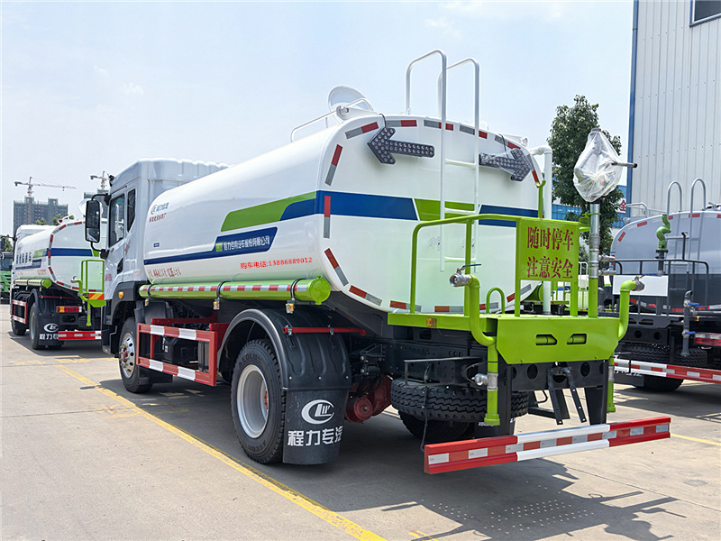 | 上裝配置:罐體采用國(guó)標(biāo)Q235碳鋼板材制作,罐體厚度4mm,前后封頭5MM加厚型,罐體容積14-15噸(14~15方),東風(fēng)多利卡灑水車(chē)質(zhì)量成熟可靠,設(shè)計(jì)先進(jìn)合理,比同類(lèi)灑水泵吸程遠(yuǎn)、壓力大、使用壽命長(zhǎng),可泵進(jìn)泵出。前沖、后灑、側(cè)噴,消防栓接口,帶后工作平臺(tái)及綠化灑水高炮(可全方位旋轉(zhuǎn),可連續(xù)調(diào)成直沖狀、大雨、小雨、毛毛雨),水位計(jì),兩根等長(zhǎng)輸水管,其余標(biāo)配。 |